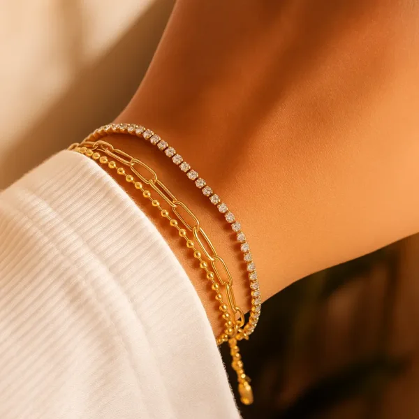 3-Layer Crystal & 18K Gold Plated Bracelet – Anti Tarnish, Hypoallergenic