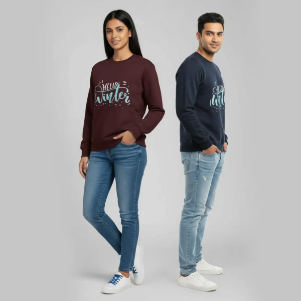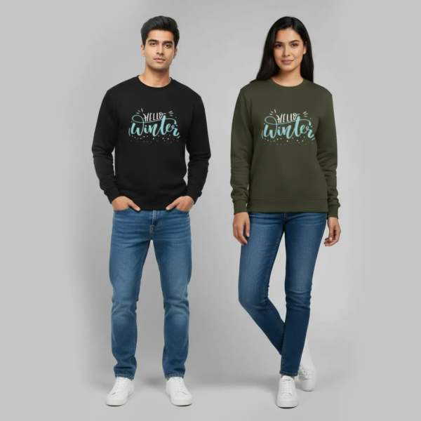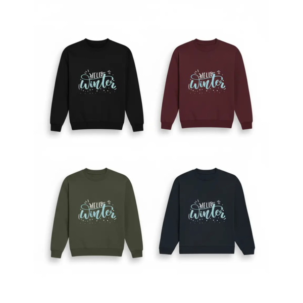 Hello Winter Unisex 100% Cotton Fleece Sweatshirt – Cozy Comfort in 4 Seasonal Colors
